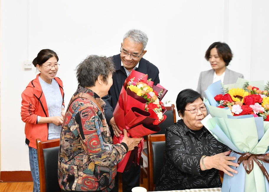 赵健代表学校党政领导和全体师生员工为老同志赠送了鲜花和生日贺礼,衷心祝福老同志身体健康、生活快乐、家庭幸福。他同大家一起深情回顾了学校66年的发展历程,强调没有老同志昔日的艰辛付出,就没有学校今天的快速发展,学校将永远铭记老同志为学校建设发展所做的贡献,发扬一代代文理人用心血和汗水铸就的文理精神,不断推动学校事业高质量发展。他希望老同志一如既往地关心支持学校事业发展,关心下一代健康成长,为学校创建高水平大学再立新功。