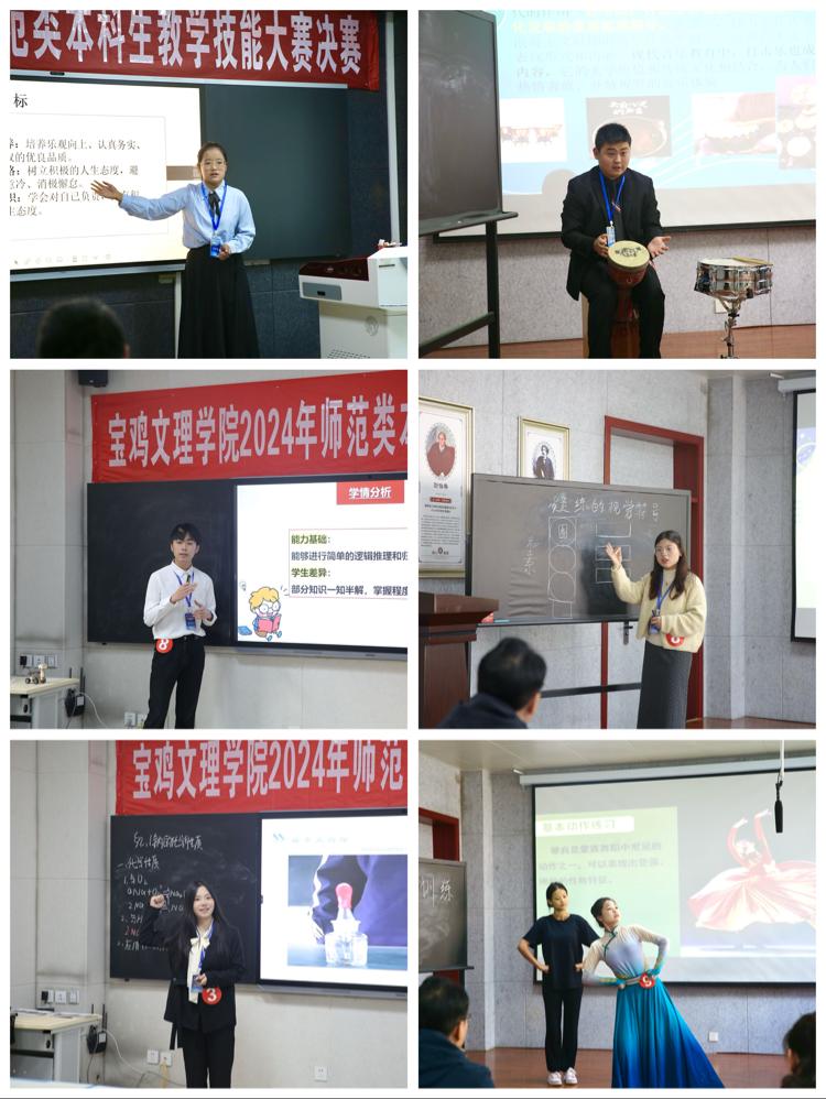 本次大赛由教务处主办、音乐学院承办,分为文科组、理科组、综合组三个组别,12个师范专业的28名本科生参加教学技能决赛。决赛分为教学设计、教学课件、微课、说课、模拟授课、回答提问五个环节。评委由10余所中小学教育教学专家及校内相关二级学院院长组成。经过激烈的角逐,最终6名学生荣获一等奖、9位学生荣获二等奖、13名学生荣获三等奖,教育学院、地理与环境学院、体育学院荣获优秀组织单位。