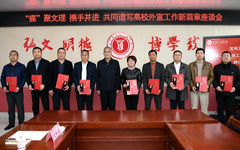 会上,李景宜宣读了媒体工作校外指导教师聘任决定,宝鸡市融媒体中心党委委员、副主任、副总编(兼)袁茵,陕西广播电视台宝鸡记者站站长张晓辉,《华商报》宝鸡记者站站长董晓明,华商融媒体宝鸡运营中心总监张红平,《三秦都市报》宝鸡记者站站长董毅,《阳光报》宝鸡记者站站长张伟,西安报业传媒集团、西宝媒体融合工作室负责人王晓光,《西部法制报》宝鸡报道组组长史红海,《陕西科技报》宝鸡记者站站长赵晓东等9名同志被聘为开元第二批媒体工作校外指导教师。校领导为他们颁发聘书、赠送学生设计的文创作品,学生代表为9名指导教师献花并送上节日祝福。