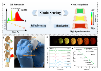 基于力致发光特性的力学传感技术由于其自驱动、可视化、非接触等特性有望在新型力学传感领域得到广泛的应用。目前关于力致发光在力学传感领域的应用研究主要集中在建立力学参数和发光强度的数学关系而实现传感特性,而发光的绝对强度容易受到环境光的影响导致光信号串扰。基于此,该团队提出了一种基于陷阱辅助和差异性响应的新策略,实现了在机械刺激下的比率计、裸眼可视化动态力致发光,为力学传感技术的源头创新提供了新的思路,得到国内外同行的一致认可。(科研管理处、物理与光电技术学院 文、图/董宇 审核/王晓玲、钱郁)