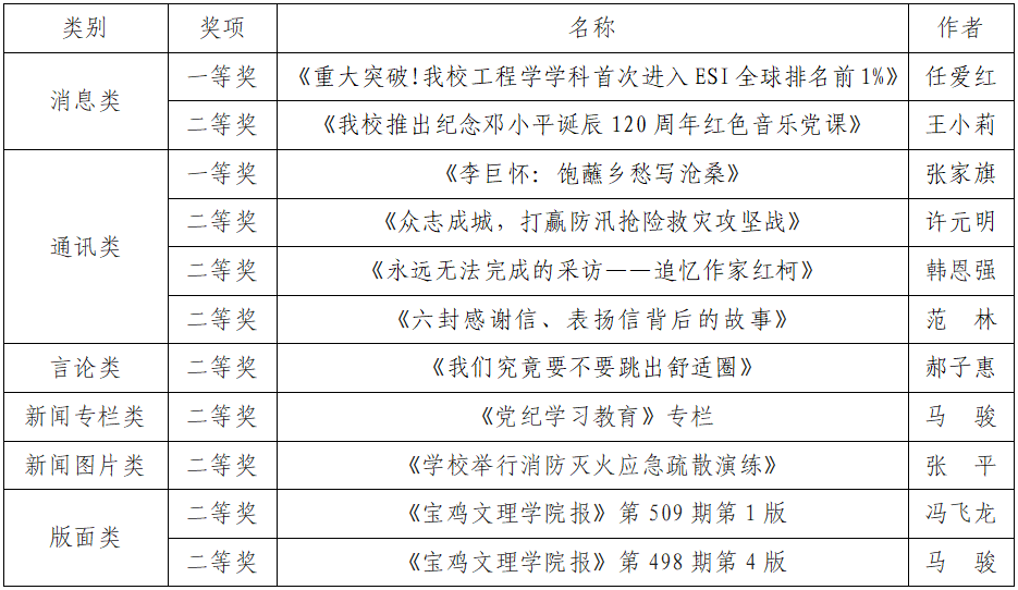 “陕西高校新闻奖”是全省高校新闻系统唯一的学术性评奖,在陕西省高校新闻界向来以高规格、严要求著称,评选范围涵盖消息、通讯、言论、新闻图片、新闻专栏、版面等六大类。(党委宣传部 文/张磊 审核/冯飞龙)