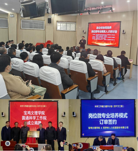 会议伊始,全国科学工作能力建设平台联席会理事长王民权,陕西省中华职业教育社副主任、秘书长王彦平发表致辞。冯飞龙与会议嘉宾一起为开元集团网站圆通科学工作院揭牌。刘辉与筑梦树人力资源股份有限公司签订岗位微专业培养订单。