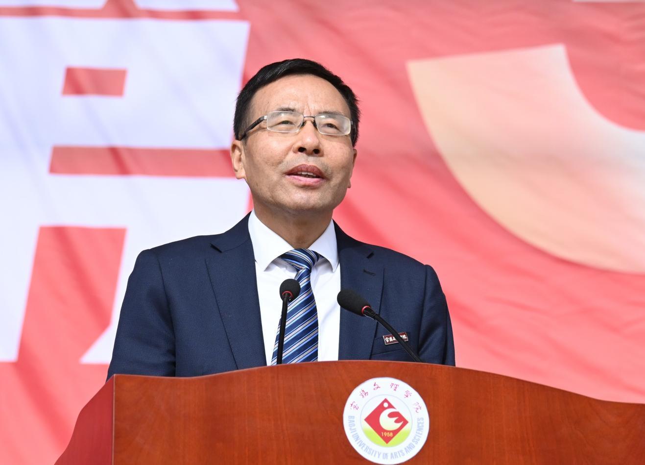 校党委书记、校长郭霄鹏致开幕辞。他强调,学校体育是落实立德树人根本任务、提升学生综合素质的基础性工程,对于培养德智体美劳全面发展的社会主义建设者和接班人,具有不可替代的重要作用,全校上下要高度重视体育工作。近年来,学校深入贯彻落实习近平总书记关于教育、体育的重要论述和党的二十大精神,以促进学生全面发展为目标,更新教育理念,深化教学改革,完善体育制度,体育教学质量和运动竞技水平进一步提升,群众性体育活动蓬勃开展。他号召全体运动员要大力弘扬奥林匹克精神,赛出水平,赛出风格;广大裁判员要秉持公平公正原则,恪尽职守,认真做好裁判工作,保障赛事顺利进行;各学院和相关部门要以运动会为契机,深入推进阳光体育运动,增强学生体质,提升学生素质;广大师生要将中华体育精神融入日常工作和学习中,团结奋斗,积极进取,努力开创学校高质量发展新局面。
