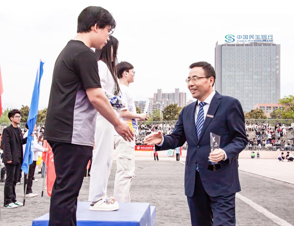 4月25日下午,第36届运动会顺利闭幕。郭霄鹏向获奖单位和运动员颁奖,校党委副书记韩干校主持闭幕式。