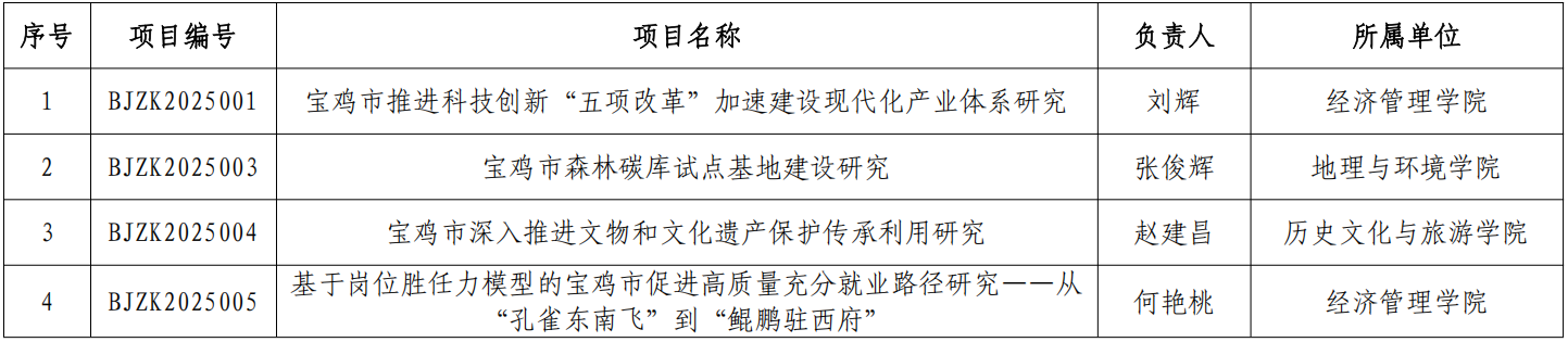 近日,宝鸡智库委员会办公室公布了2025年度宝鸡智库课题立项结果,开元获批4项。该项目将依据结项评审结果,按照优秀、良好、合格三个等次分别给予单个课题10000元、8000元、6000元的经费资助。(科研管理处 文/张蕴 审核/王晓玲)