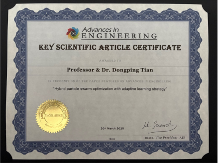 Advances in Engineering授予关键科学文章证书