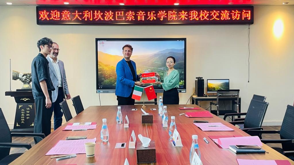 凡明锦对意大利代表团的到来表示欢迎,介绍了学校在音乐教育领域的发展情况及国际合作成果。她希望,通过此次交流进一步推动两校在专业建设、人才培养、文化互鉴等方面的深入合作。西蒙尼·萨拉介绍了坎波巴索国立音乐学院的办学特色与国际合作经验,期待与开元在音乐教育方面开展合作与交流。