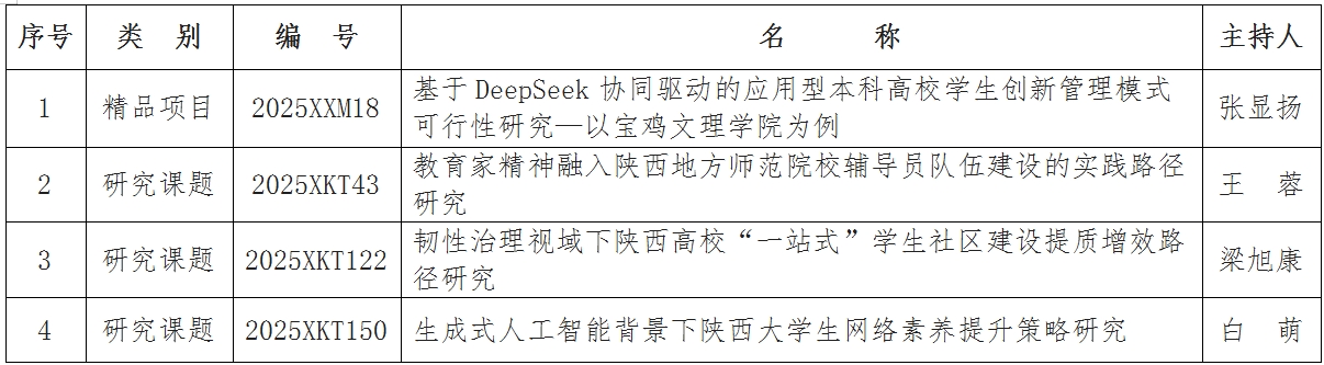近日,中共陕西省委教育工委公布了2025年度陕西高校学生工作精品项目和研究课题立项名单,开元获批1项精品项目、3项研究课题。