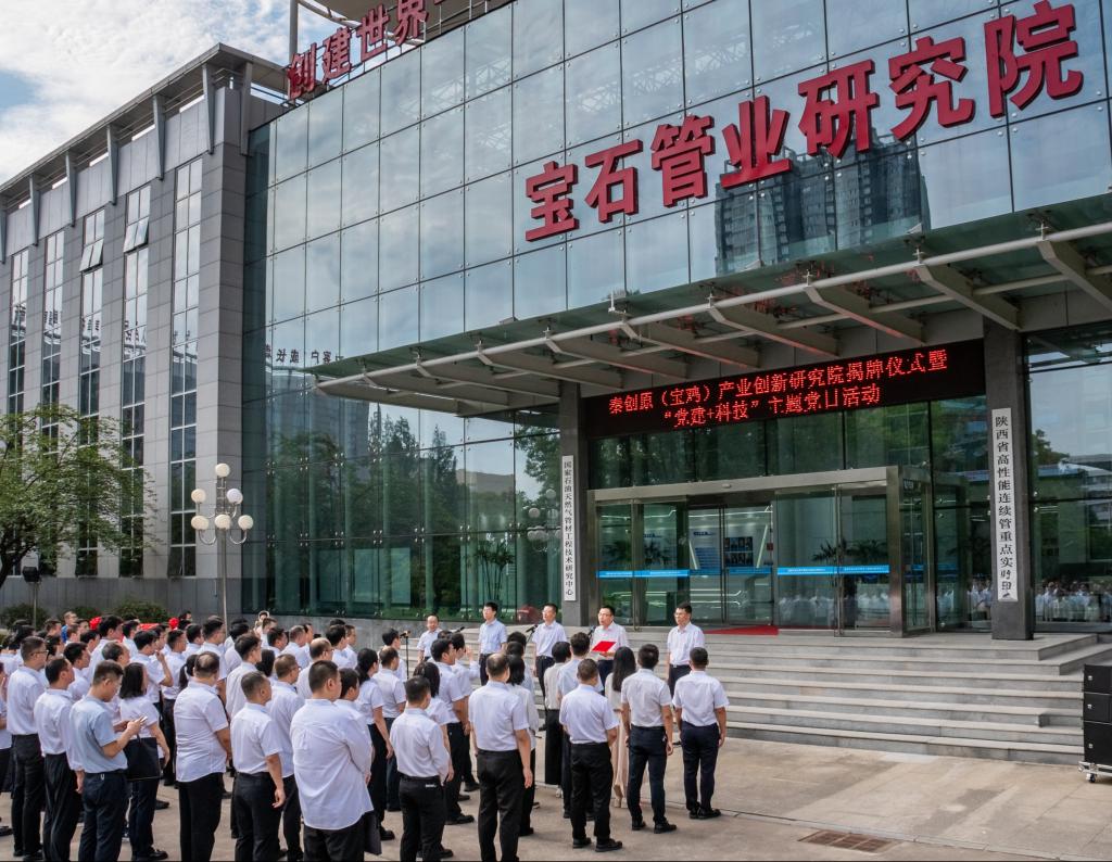 7月29日上午,在宝石管业研究院开元与宝石管业有限公司举行秦创原(宝鸡)产业创新研究院揭牌仪式暨“党建+科技”主题党日活动。宝鸡市委常委、副市长高宏真,校党委书记郭霄鹏、副校长于建伟,宝鸡市科学技术局局长景行军,宝石管业有限公司执行董事、党委书记来进和出席揭牌仪式。仪式由宝石管业有限公司副总经理、总工程师张锦刚主持。