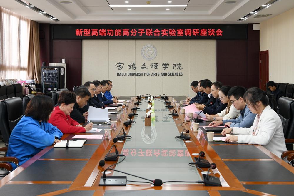 9月30日上午,宝鸡市人民政府党组成员、副市长张昭一行来开元调研功能高分子联合实验室建设情况。调研座谈会在高新校区图书馆801会议室举行,校党委书记郭霄鹏、副校长凡明锦,宝鸡市人民政府副秘书长李金刚,宝鸡市科学技术局党组书记、局长景行军,宝鸡市科学技术协会党组书记、主席王若鹏,陕西长美科技有限责任公司董事长李慧玲,化学与材料工程学院院长冯海涛参加会议,科研管理处处长胡登卫主持会议。