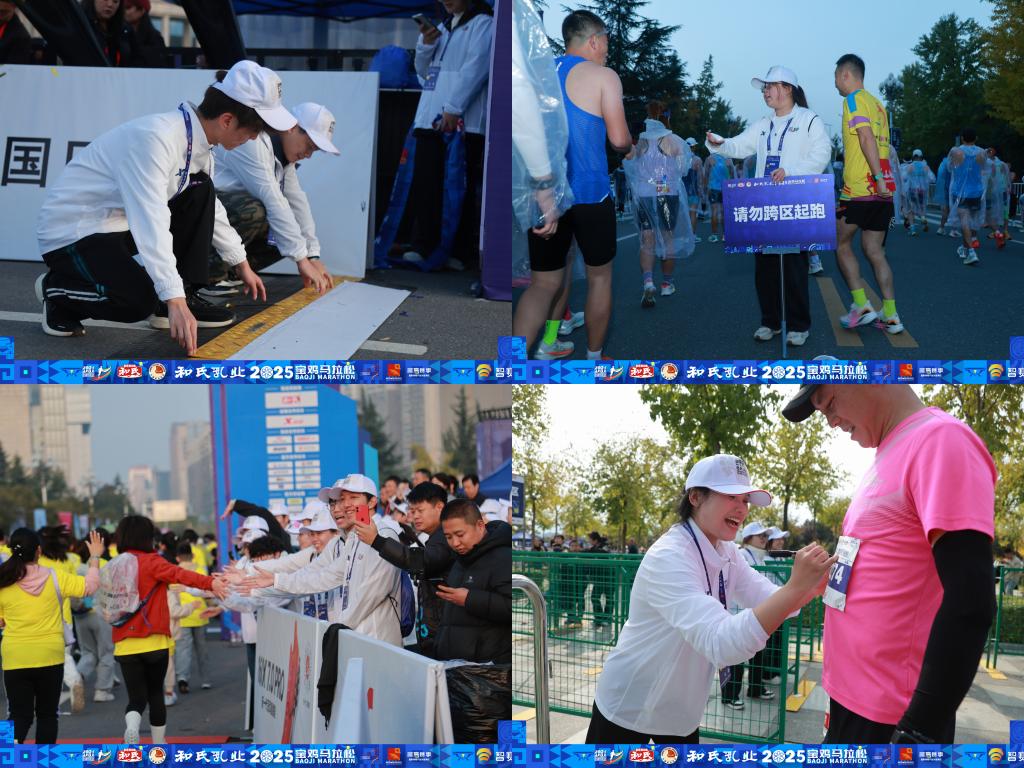 10月26日7时30分,2025宝鸡马拉松赛在宝鸡市行政中心广场鸣枪开赛。开元1700名师生志愿者为赛事提供志愿服务。