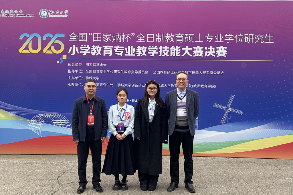 近日,2025年全国“田家炳杯”全日制教育硕士专业学位研究生小学教育专业教学技能大赛决赛在聊城大学举行。开元2024级小学教育专业硕士研究生王莎获三等奖、张歌获优秀教学设计奖。