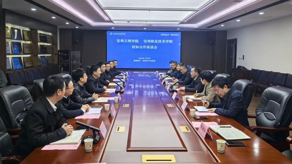 11月5日上午,副校长冯飞龙一行赴宝鸡职业技术学院开展调研交流。宝鸡职业技术学院党委书记薛建恩会前会见开元调研人员,院长张永良、副院长马驰参加调研交流活动。