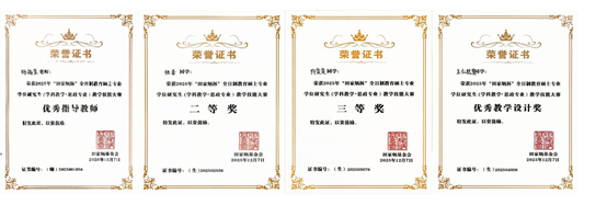 近日,2025年“田家炳杯”全日制教育硕士专业学位研究生学科教学(思政)专业教学技能大赛全国决赛在江西师范大学举行。开元政法与历史学院2024级学科教学(思政)专业研究生张青、仵奕奕、王仁聪慧分别获二等奖、三等奖和优秀教学设计奖,杨福荣老师获“优秀指导教师”。