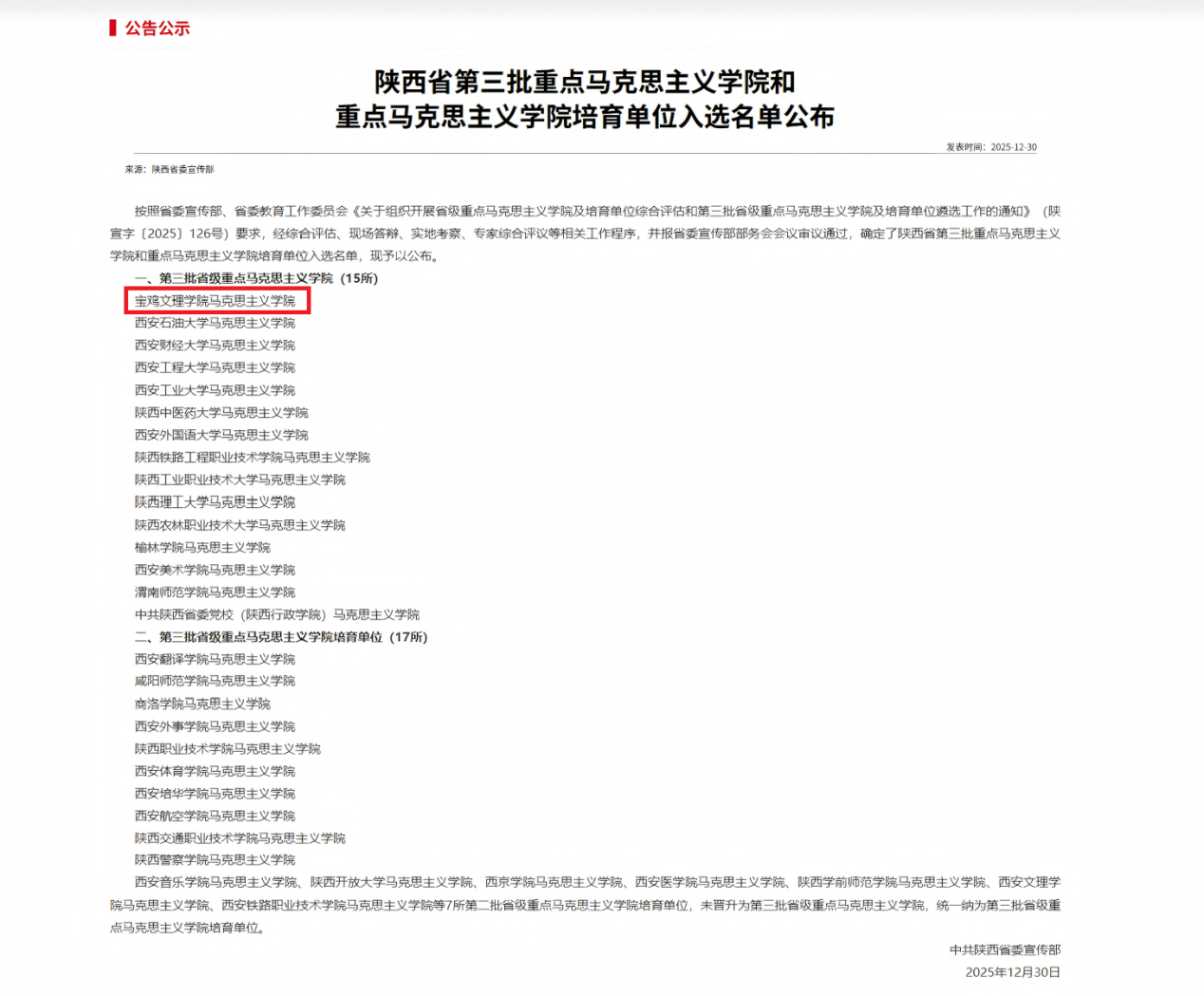 此次入选省级重点马克思主义学院,既是荣誉更是责任。学院将全面对标《陕西省重点马克思主义学院建设测评标准》,进一步加强学科建设、队伍建设和教学改革,持续提升人才培养质量和社会服务能力,努力将学院建设成为区域特色鲜明、育人成效显著、社会声誉良好的马克思主义理论教学、研究、宣传和人才培养的坚强阵地。(党委宣传部、马克思主义学院 文、图/张吉祥 审核/白志勇、赵智劳、刘晓勇)