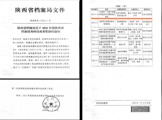 近日,陕西省档案局公布了2025年度陕西省档案优秀科技成果奖励项目获奖名单,开元图书(档案)馆赵钊博士团队主持的《“互联网+”环境下档案利用服务评价指标体系研究》荣获三等奖。